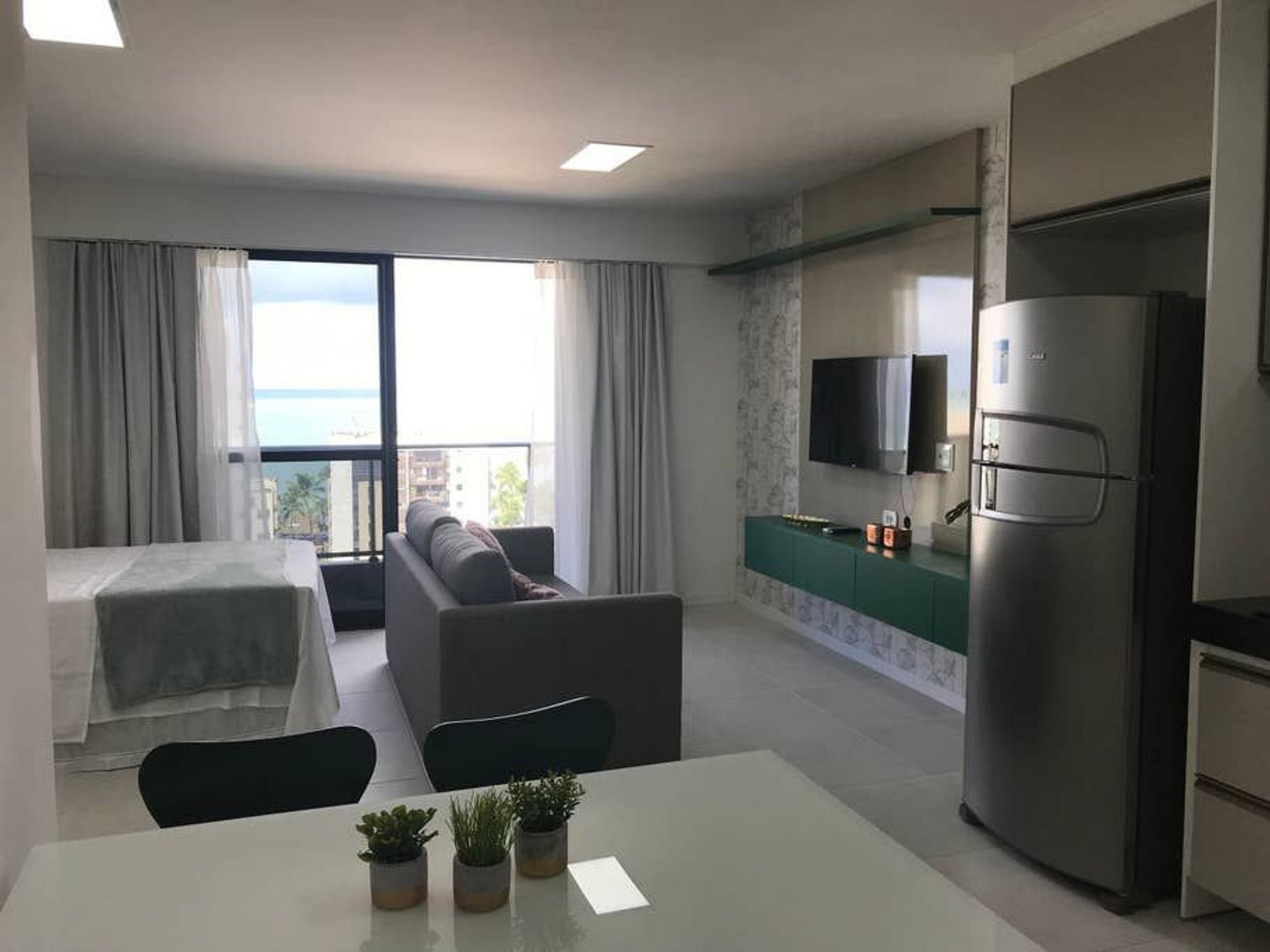 O apartamento tipo studio tem uma linda vista para o mar e comporta até 4 pessoas, duas na cama de casal e duas no sofá-cama. Cozinha totalmente equipada com geladeira, microondas, cooktop duas bocas, liquidificador, cafeteira, sanduicheira, pratos, panelas, talheres e demais utensílios de cozinha para você preparar suas refeições com comodidade. Conta ainda com chuveiro elétrico, wi-fi e tv a cabo.